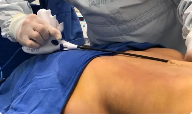 Es un dispositivo que permite extraer la grasa en mayor cantidad y de forma menos traumática, obteniendo una recuperación corporal más rápida y con menores irregularidades en la piel de los pacientes